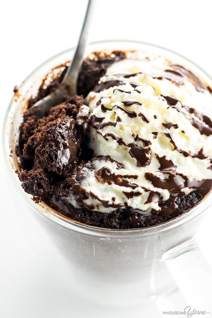 I mix this easy keto mug cake recipe, microwave it, add whipped cream, sit on the couch, and pretend I’m fancy.