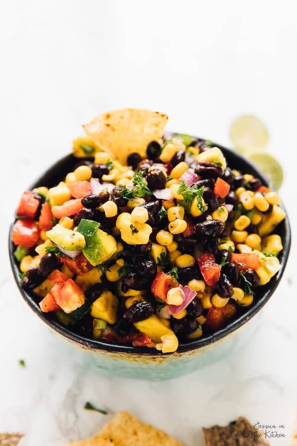 The combination of beans and corn creates contrast.