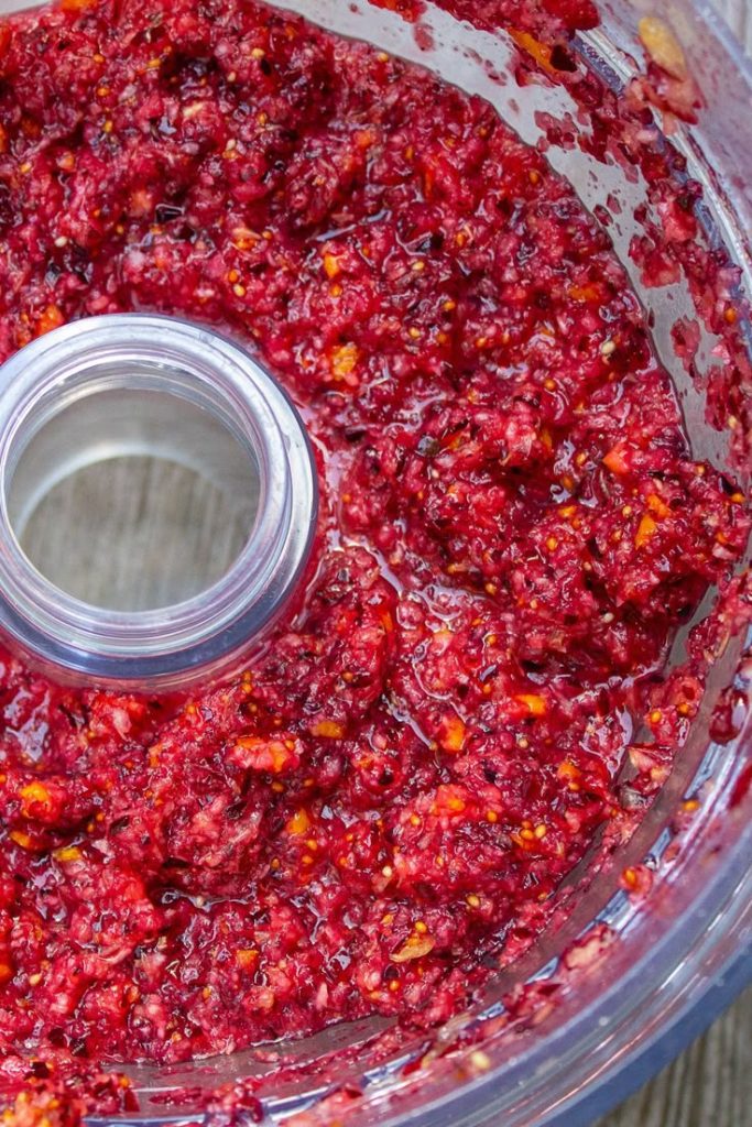 Let me say this clearly: Do not over-process. You want texture, not cranberry smoothie.