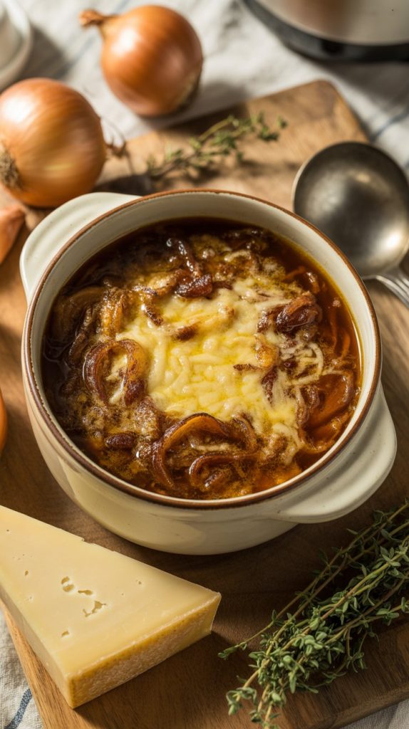 If you’ve ever tasted a truly great French onion soup—the kind that hits you with that deep caramelized-onion sweetness, that rich beefy broth, and that ridiculously satisfying cheese pull—then you already know why people obsess over this stuff.